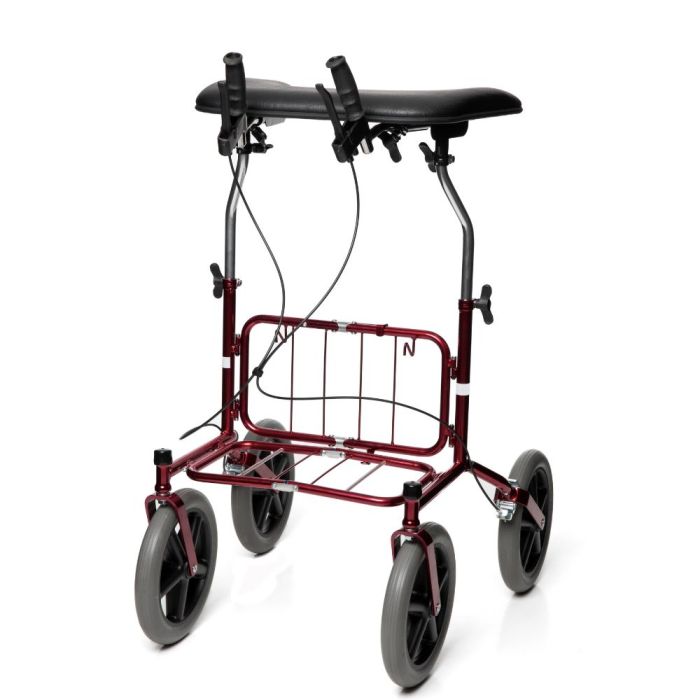 The Carl-Oskar Pulpit Walker Standard features a wide, comfortable forearm support platform table that allows pain sensitive users to comfortably rest their forearms while the front-facing brake handles assist to maintain better posture. The Carl-Oskar Pulpit Walker features a reactive frame that remains stable over virtually any surface. With extra large ball-bearing mounted wheels and a comfortable and firm table, the Carl-Oskar Pulpit Rollator is the ideal option for pain sensitive users that find it difficult to use regular trolley walkers. The low model is ideal for shorter users.